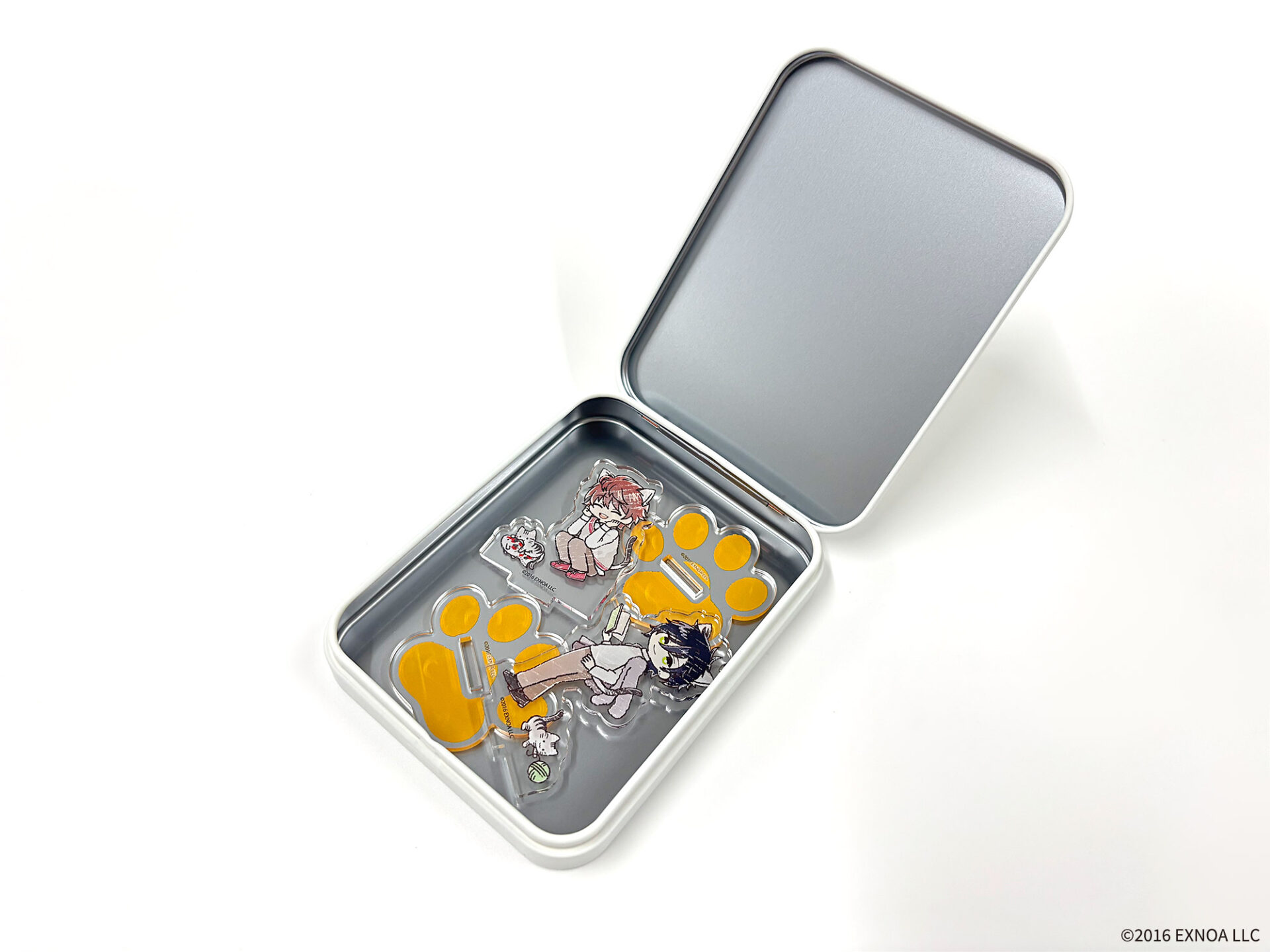 ソフトな感触が特徴のブリューム缶小物入れは、大きさおよそ縦12cm×横10cm×厚さ2cmの蝶番付きの缶ケース。アクリルぷちスタンドなどグッズをしまって、自分だけのコレクションボックスを作ってみませんか?