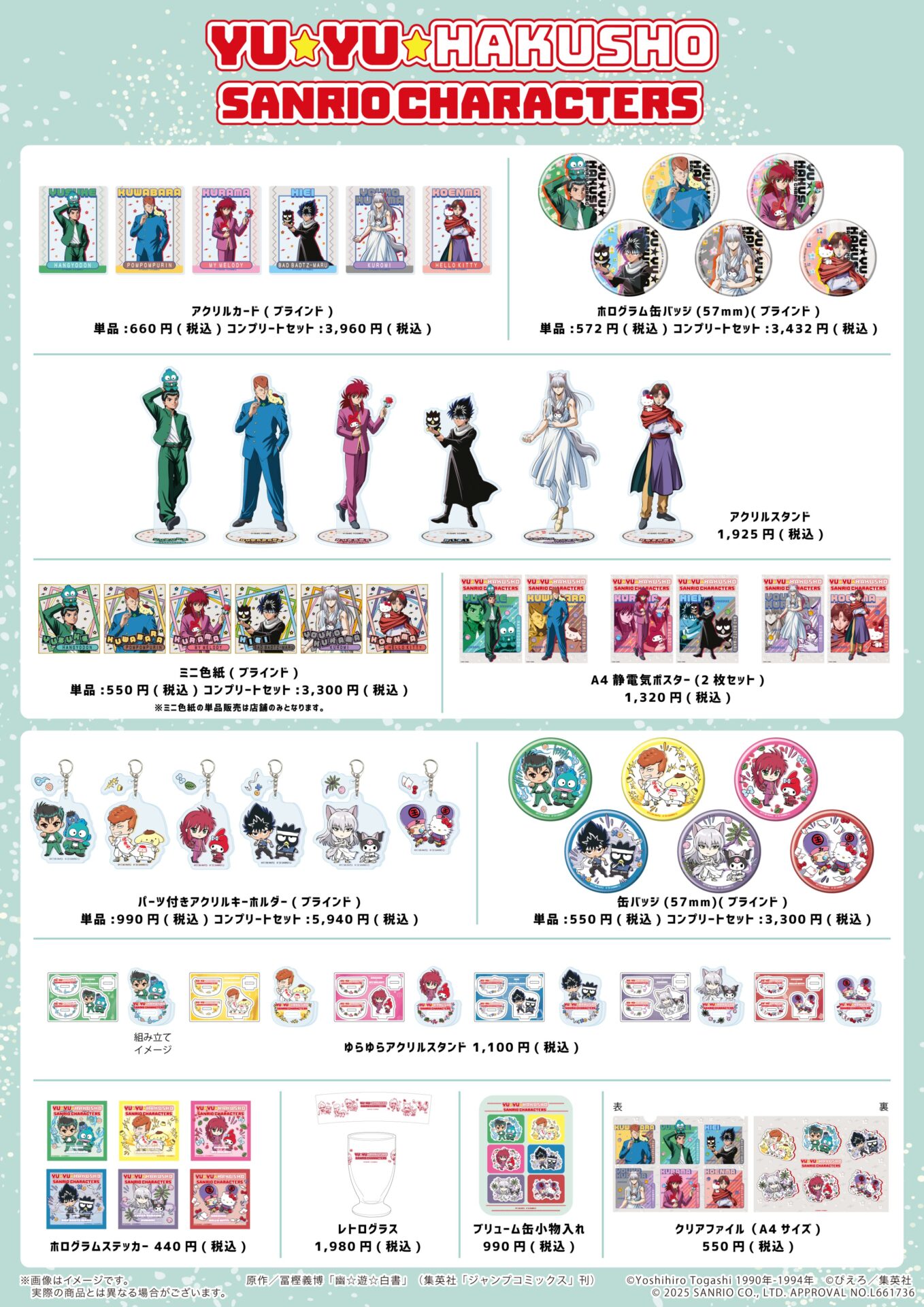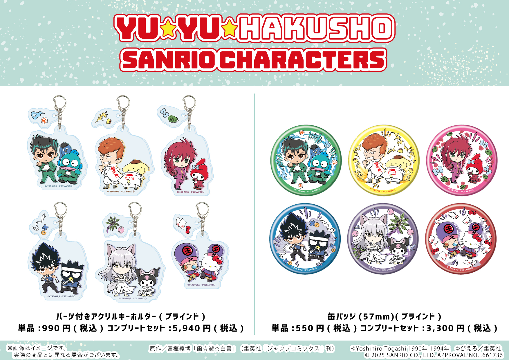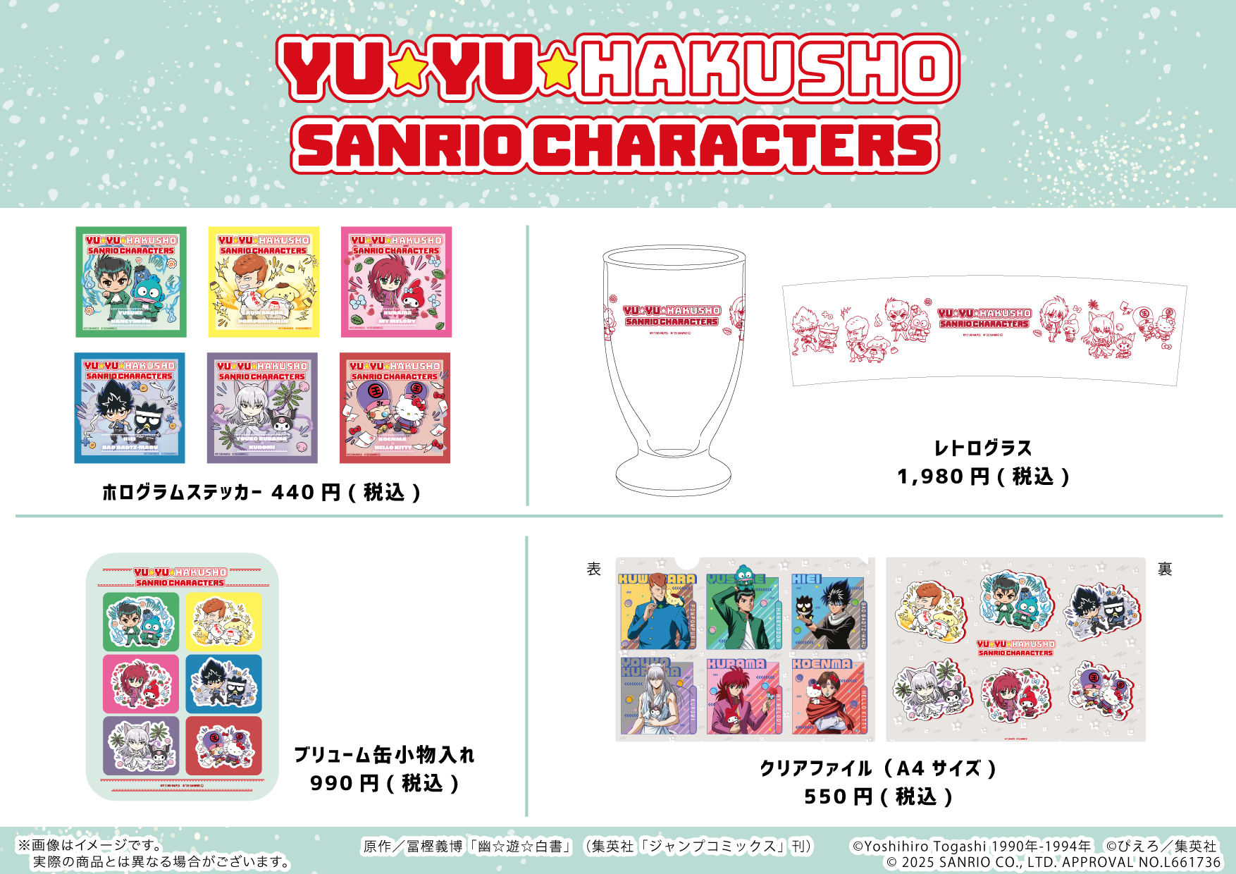 2種類の新規コラボイラストを使用して、内容盛りだくさんで登場したTVアニメ『幽☆遊☆白書』×サンリオキャラクターズの新作コラボグッズ。