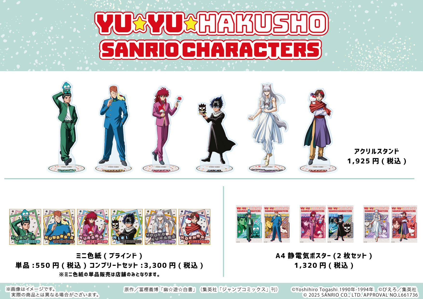 TVアニメ『幽☆遊☆白書』×サンリオキャラクターズの新作コラボグッズが登場! 8月29日(金)からサンリオアニメストア池袋P’PARCO店と、通販サイト「サンリオアニメストアONLINE」で販売中です。