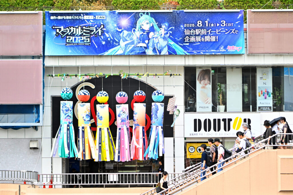 仙台では「マジカルミライ」の初開催を記念して、地元企業や学校、名産品などとのコラボレーションを展開。旧暦に合わせた七夕で賑わう8月の仙台を盛り上げました。