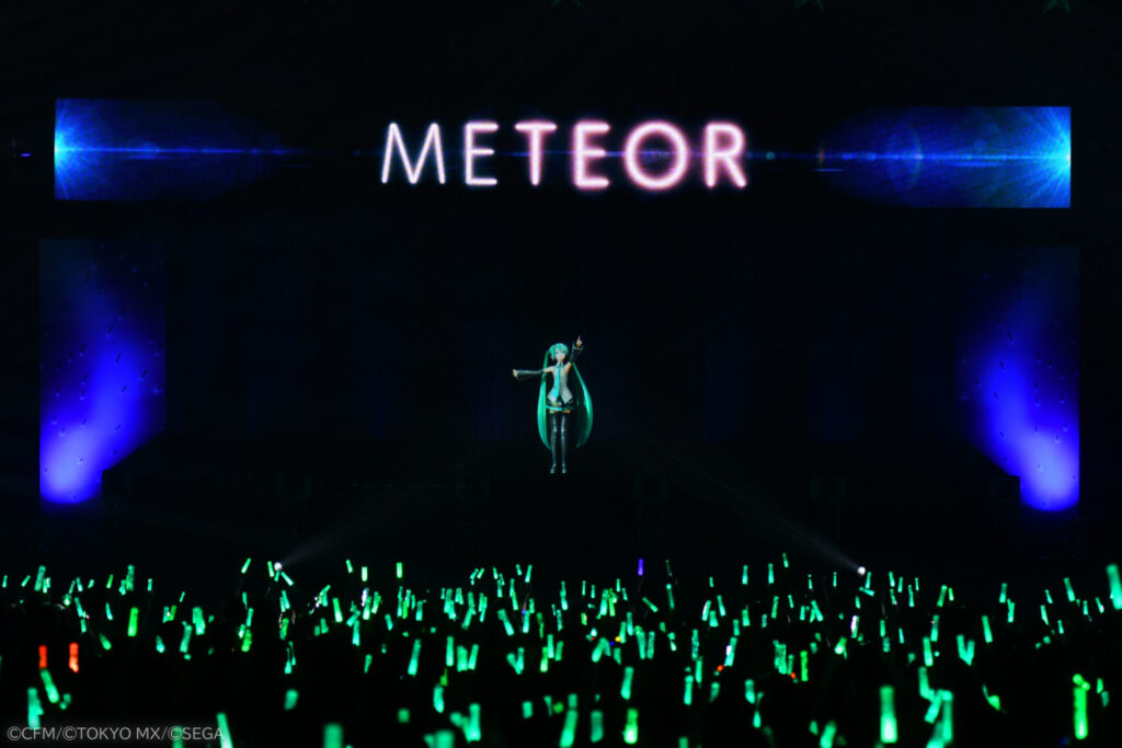 「Blessing」のパフォーマンスを終えた6名によるMCの後は、その場の締めを任された初音ミクがメインビジュアルの衣装に着替え、ファンに「私たちは、みんなの一番星になれたかな?」と語りかけました。そうした様々なパフォーマンスの最後を締めくくったのは、もちろんテーマソングの「ラストラス」(*Luna feat. 初音ミク)です。