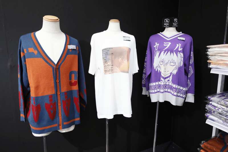 会場の出口には、展覧会の記念グッズが並ぶ物販エリアも展開中。情報公開から話題となったセーターや、Tシャツ、アクリルスタンドなどもラインナップされており、“推し活”グッズとしても魅力的。