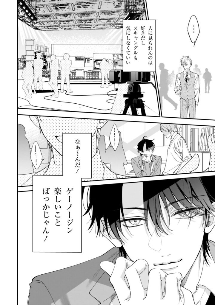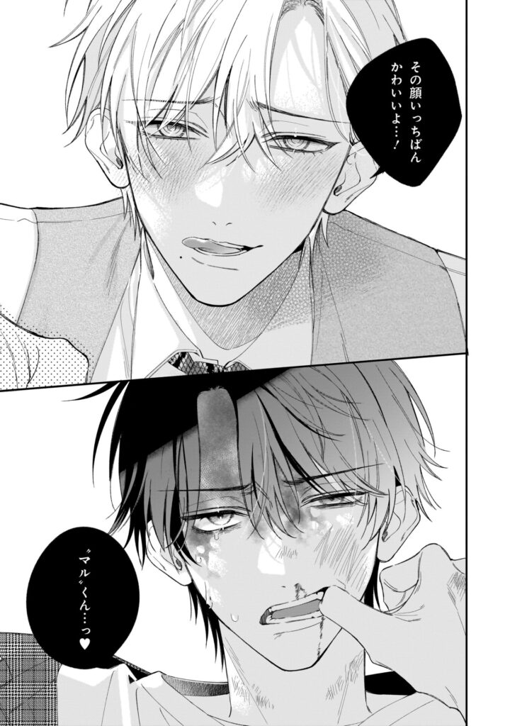 『エンドロールは地獄まで』は、「カドコミ」および「カドコミアプリ」にて連載中、少女漫画誌出身の三ツ星しずく先生による著者初のBL作品。ヤンデレサイコなマネージャー・冬城純×遊び人チャラクズ芸能人・小犬丸嵐のバトルラブが描かれています。
