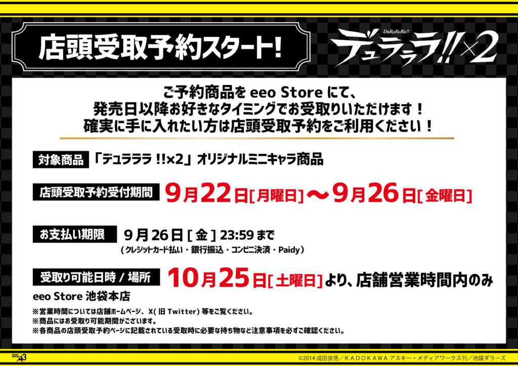 TVアニメ『デュラララ!!×2』POP UP CORNER開催です。