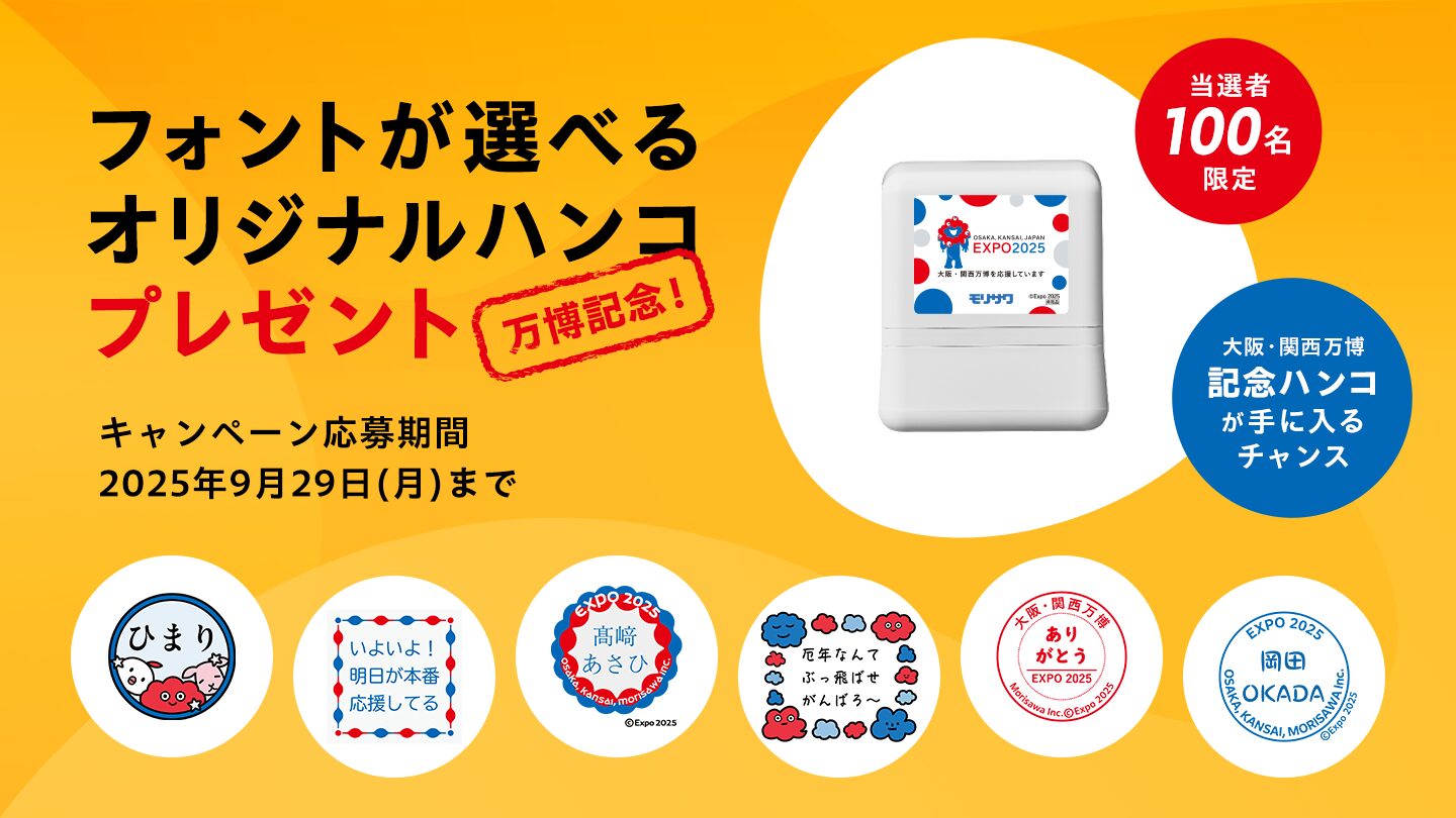 また、作成したデジタルスタンプが、本物のハンコになって届くプレゼントキャンペーン「万博記念!フォントが選べるオリジナルハンコプレゼント」も9月29日(月)まで開催中です。