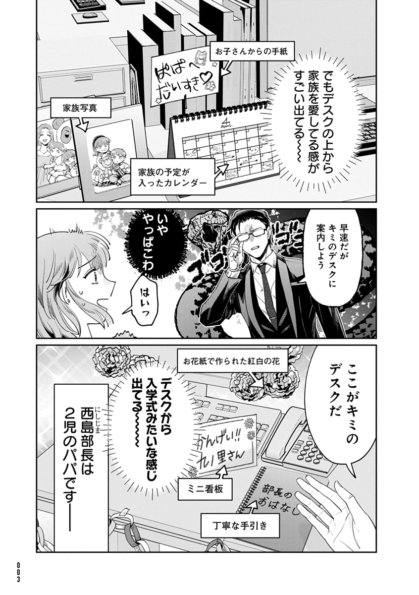 異動してきた部署には、鬼と噂されるブラック部長がいて……!? だがその正体は、育児に全力コミットしているホワイト上司だった。