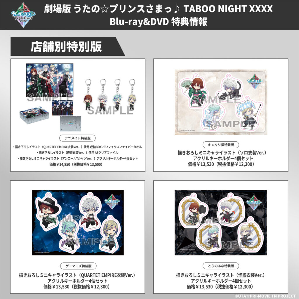 リリースが発表された『劇場版 うたの☆プリンスさまっ♪ TABOO NIGHT XXXX』Blu-ray&DVDの初回プレス分のBlu-ray&DVDに、ライブとライブ・ビューイングのプレミア先行抽選のシリアルコードが封入されるそうなので、ご予約をお忘れなく!