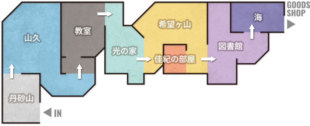 物語を辿る没入感のある展示空間で作品世界を体感。