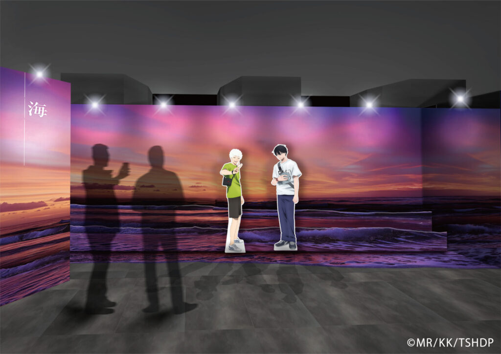 作中の印象的なシーンを再現したフォトスポットや体験スポットも多数展示。