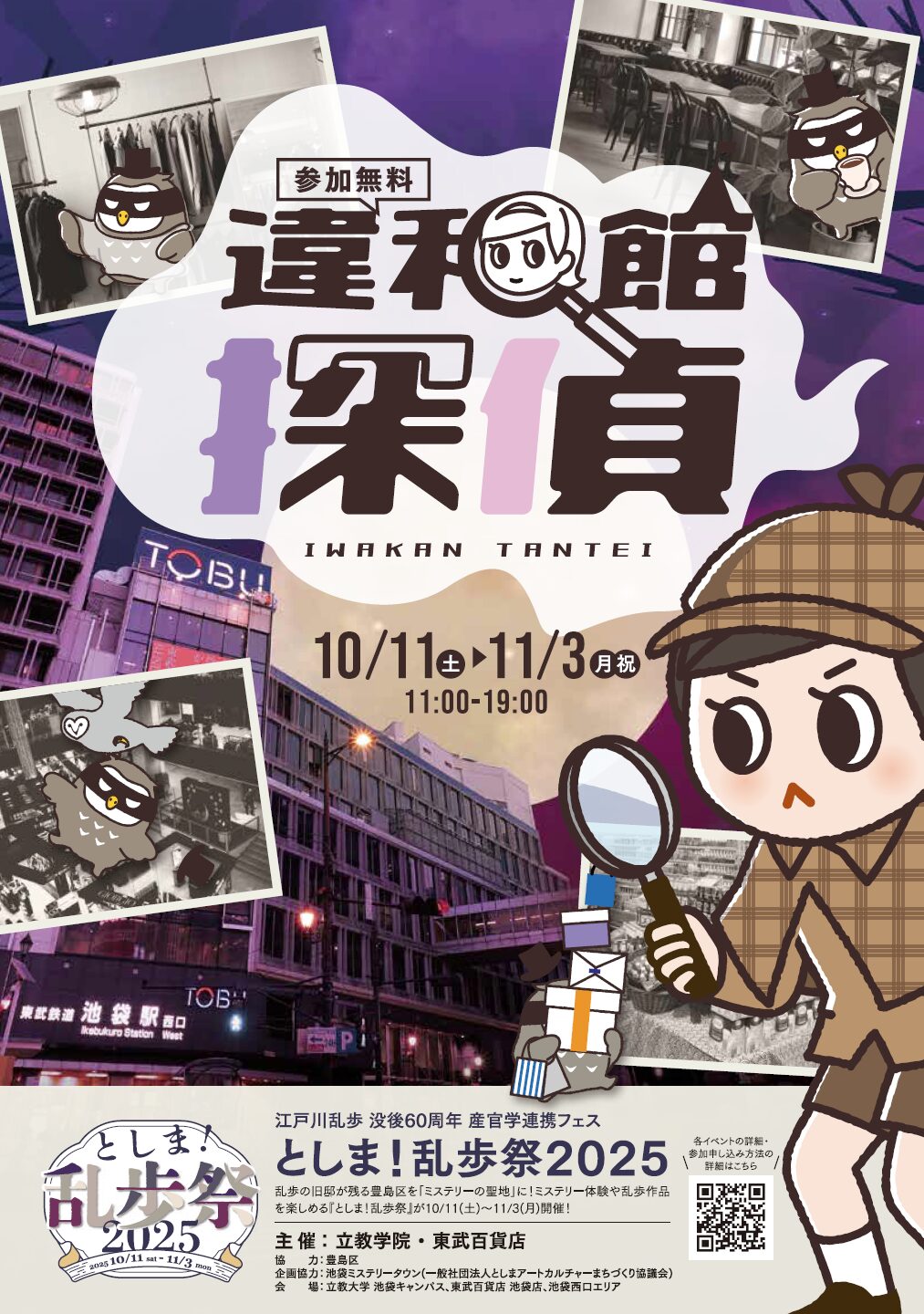 その豊島区にある立教大学、東武百貨店 池袋本店、池袋西口エリアでフェスイベント「としま!乱歩祭」が、10月11日(土)~11月3日(月・祝)にかけて開催されることが発表されました。