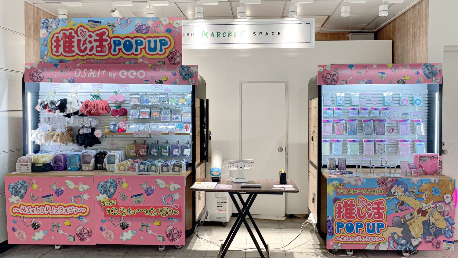 JR新宿駅中央東改札前に期間限定でオープンした「推し活POP UP~めちゃカワ!ノスタルジア~」。平成レトロからトレンドのエンジェルコアまで、SNSで話題の推しプラ新商品が多数ラインナップしています!