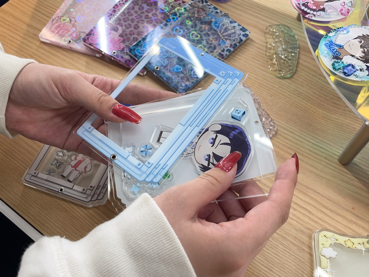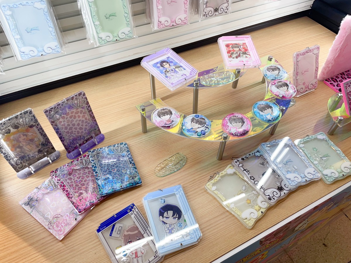 続いては、サンプル展示スペース! ここでは実際に売っているアイテムがお試し用のサンプルとして展示されていて、お手持ちのグッズとの相性やサイズ感をチェックすることができます。