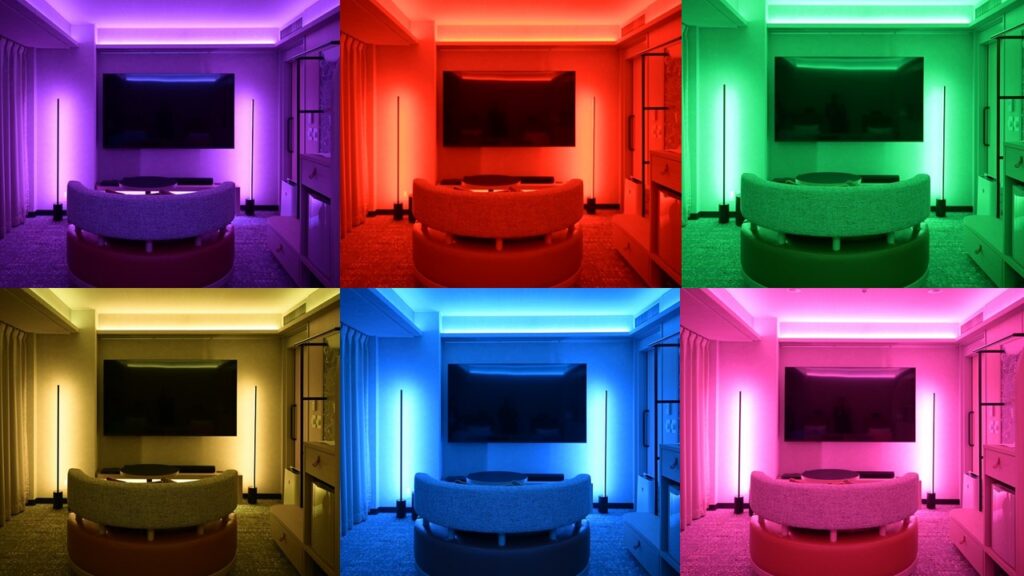 テレビに映し出された映像に合わせて色が変化する映像エンタメ照明で没入体験をお楽しみください。