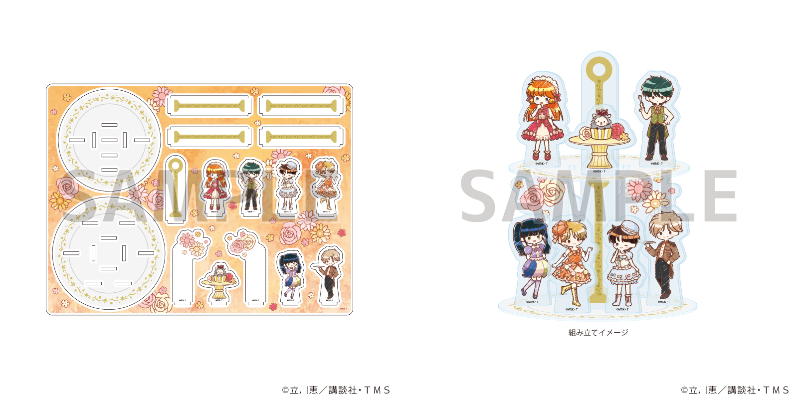台座パーツ内にキャラクターたちのパーツを自由に配置できる、組み立てて&眺めて楽しいアクリルジオラマです!