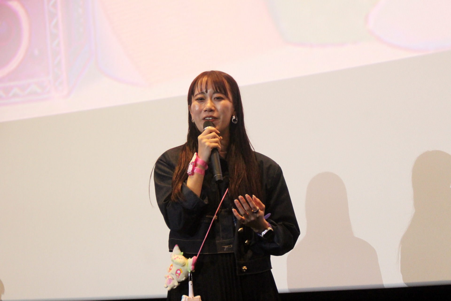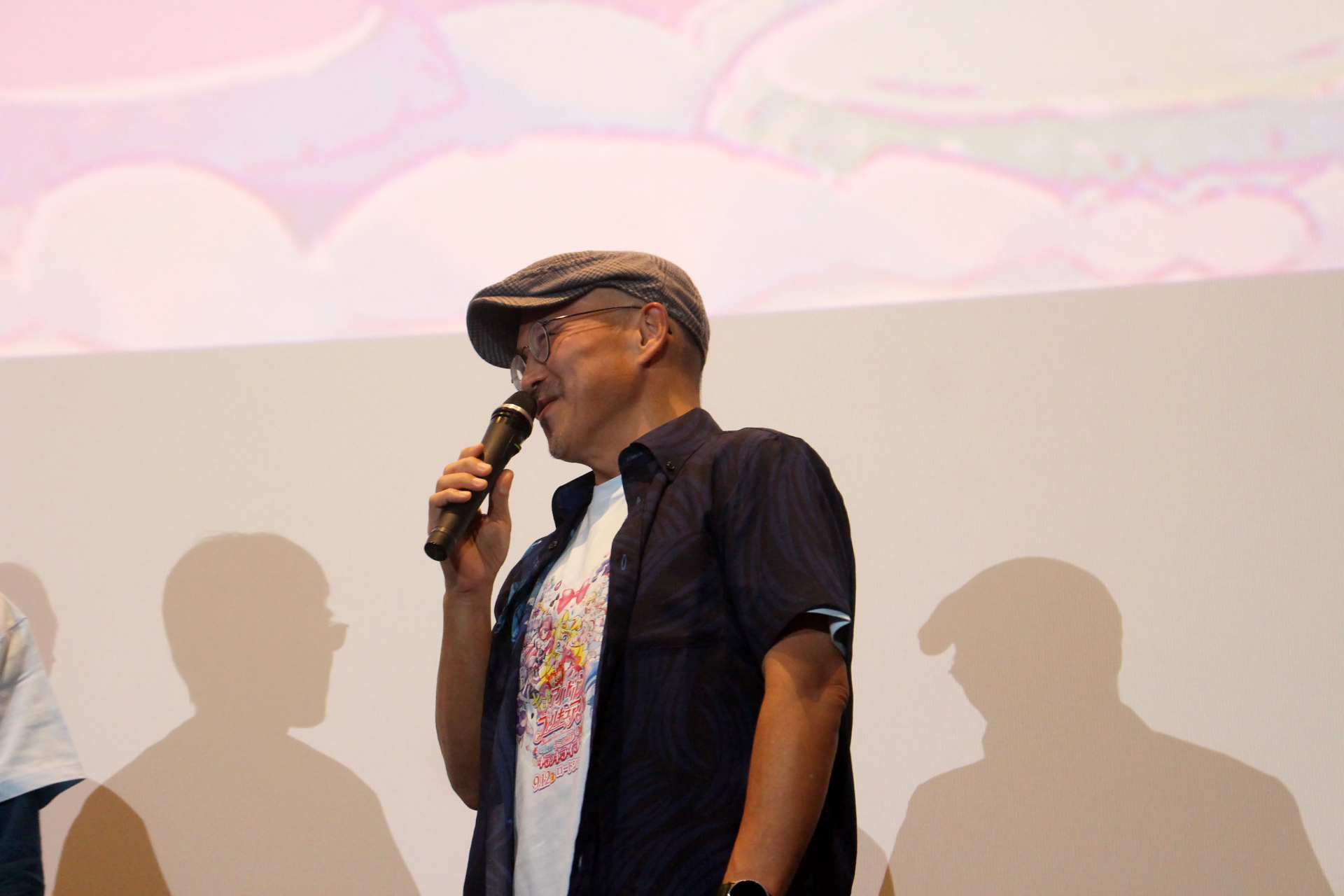続いて、キャラクターデザインと総作画監督を担当する板岡 錦さんが「自分で言うのも何ですけど、この映画おもしろいですよね?」と問いかけると、賛同の大きな返事と拍手が。続けて「毎回観るたびに泣いちゃうんですよね」と話すと「わかる~!」の声も。