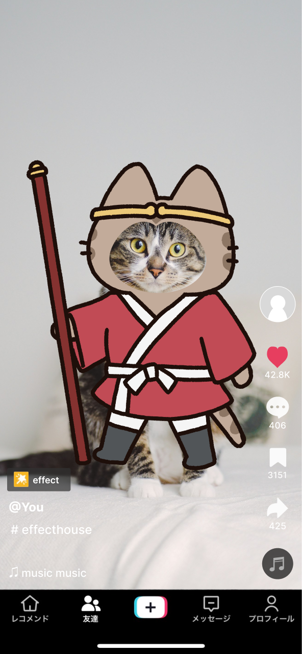 さらに、公式TikTokにてペットを『ねこむかしばなし』のキャラクターの格好にさせることができる、なりきりARフィルターが配信中です。