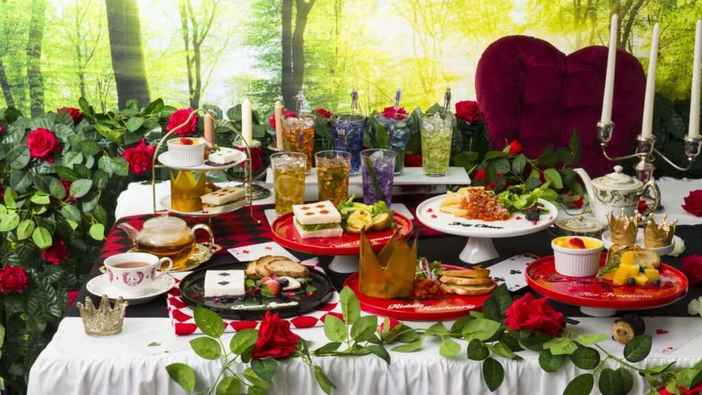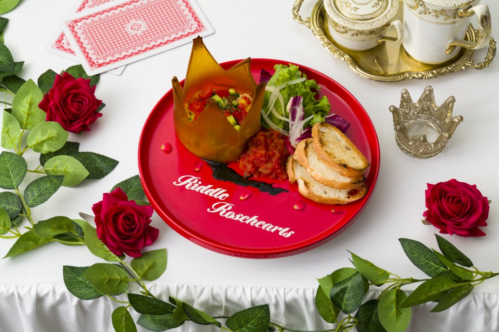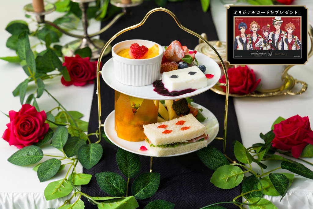 メニューは、シーズン1「エピソード オブ ハーツラビュル」にフォーカス。ハーツラビュル寮のティーパーティーをイメージし、その世界観を詰め込んだアフタヌーンティーのほかに、作中に登場するキャラクターをイメージしたメニューや各寮のカラーイメージしたドリンクなど、フォトジェニックで、趣向を凝らした楽しいメニューが登場します。