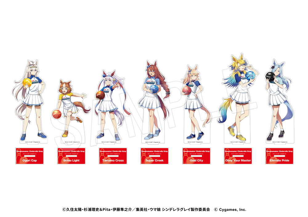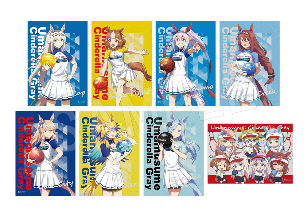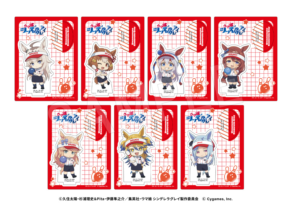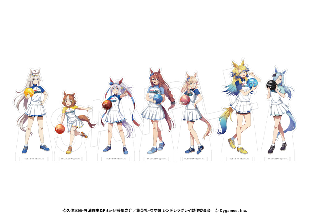 本コラボキャンペーンでは、ボウリングを楽しむウマ娘たち7人の新規描き下ろしイラストを使用したコラボグッズが販売されるほか、カプセルトイの「ましかく缶バッジ」や、クレーンゲーム景品の「BIGアクリルスタンド」などの新作アイテムも登場します。