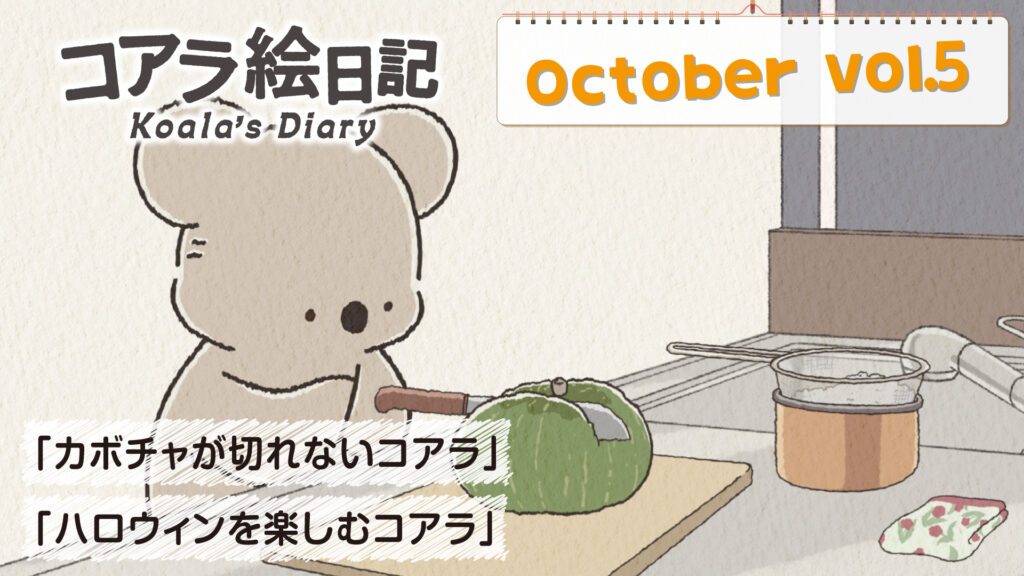 2025年10月2日(木)20時より配信中のアニメ『コアラ絵日記』。その第5話「カボチャが切れないコアラ」「ハロウィンを楽しむコアラ」の先行カットが公開されました。 第4話の先行カットはこちら 第5話「カボチャが切れない … 続きを読む アニメ『コアラ絵日記』第5話「カボチャが切れないコアラ」「ハロウィンを楽しむコアラ」の先行カットが公開!