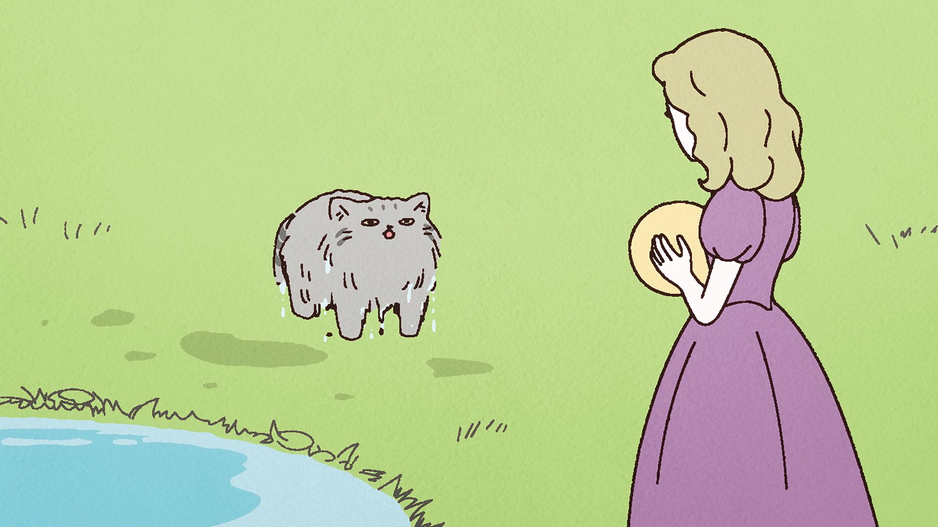 2025年10月15日(水)20時より配信中のアニメ『うごく!ねこむかしばなし』。その第3話「カエルの王子様なねこ」の先行カットが公開されました!