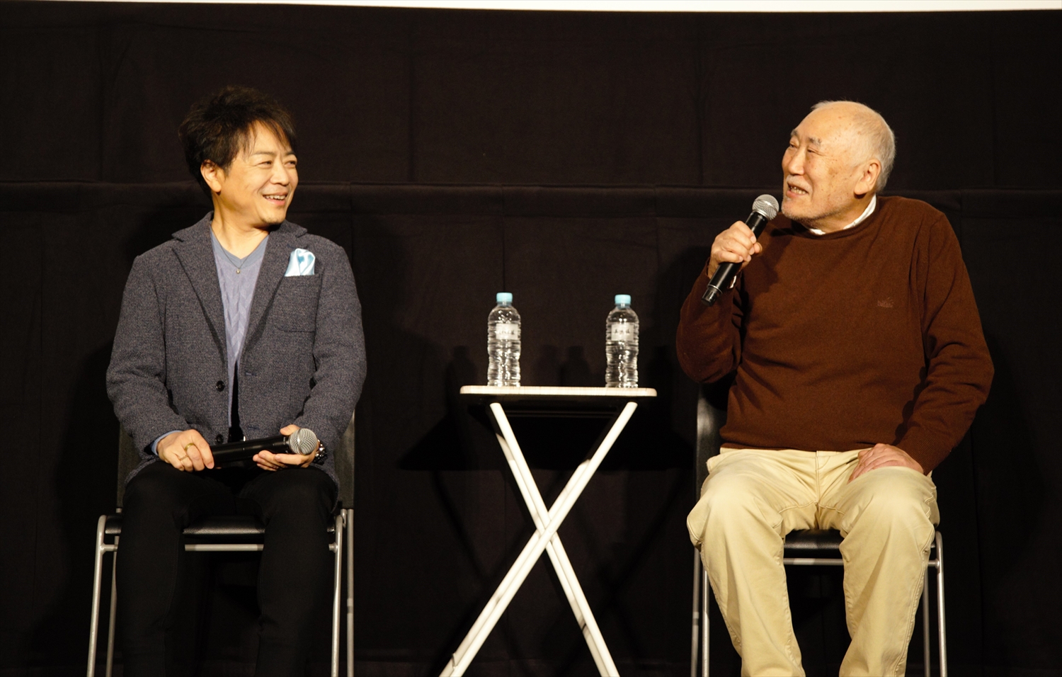 旧作の中から選ばれた3話の上映後、壇上に水滸のシンこと毛利伸役の佐々木望、シリーズ構成の髙橋良輔が登場すると、会場は温かい拍手と大きな歓声に包まれました。