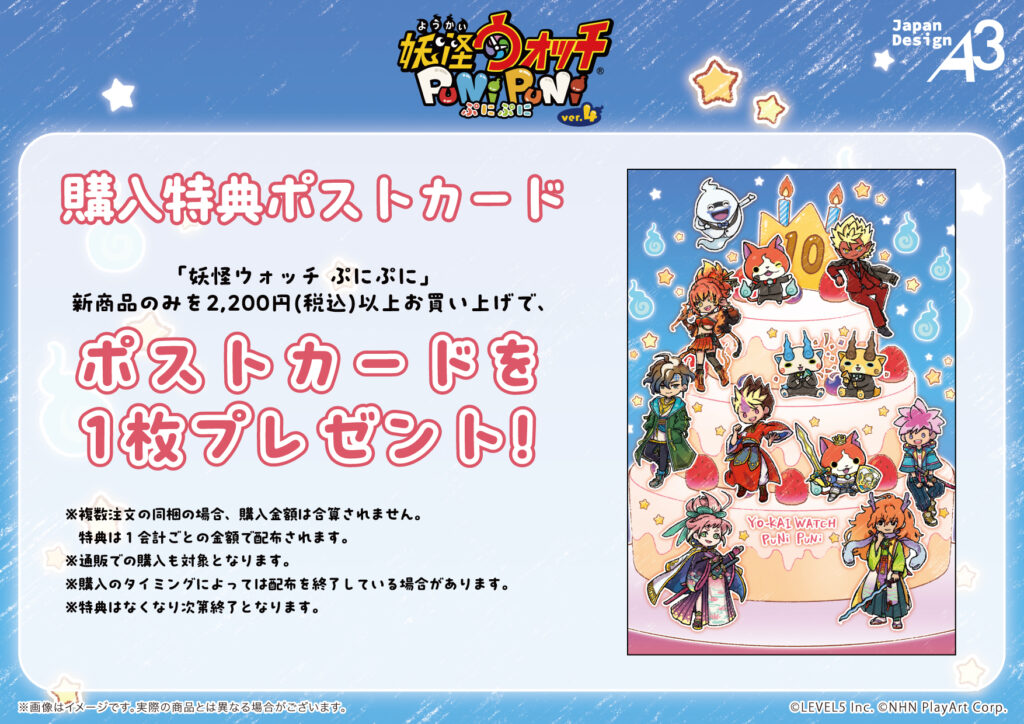 『妖怪ウォッチ ぷにぷに』新商品のみを、1会計2,200円(税込)以上お買い上げいただくと、特典としてポストカード(全1種)をプレゼント!