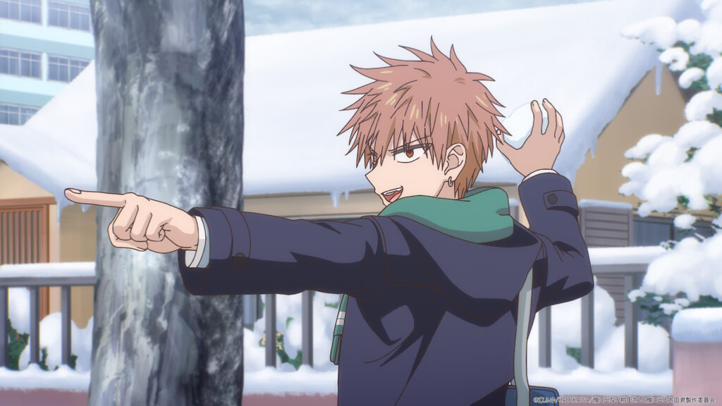雪の朝、登校途中で雪合戦が始まる。みんな、冷たいのも忘れて真剣勝負だ。