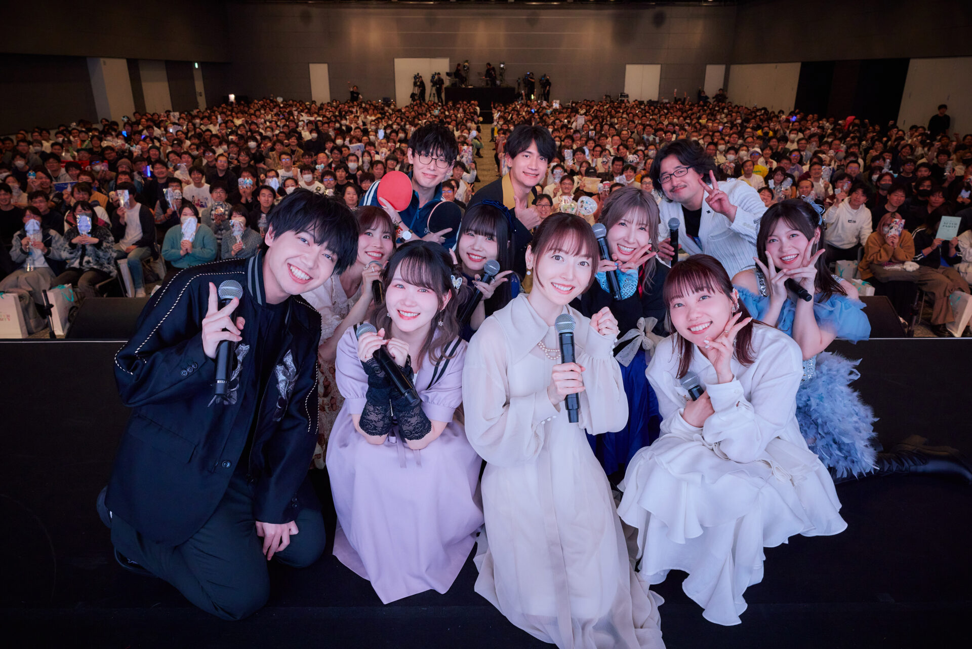 MCの小原さんによる呼びかけで、夜公演を彩るキャスト10名が登壇。昼公演出演者に加え、作品の重要な鍵を握る人物として第23話より登場した七海役の花澤香菜さんが加わりました。