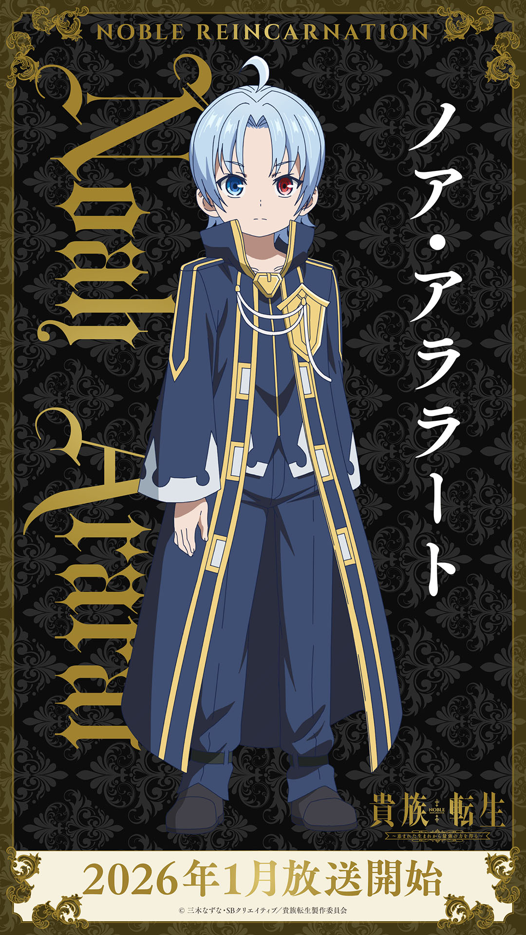 2026年1月から放送がスタートするTVアニメ『貴族転生 ~恵まれた生まれから最強の力を得る~』。同作に登場するメインキャラクターのキャラクタービジュアルが公開されました。