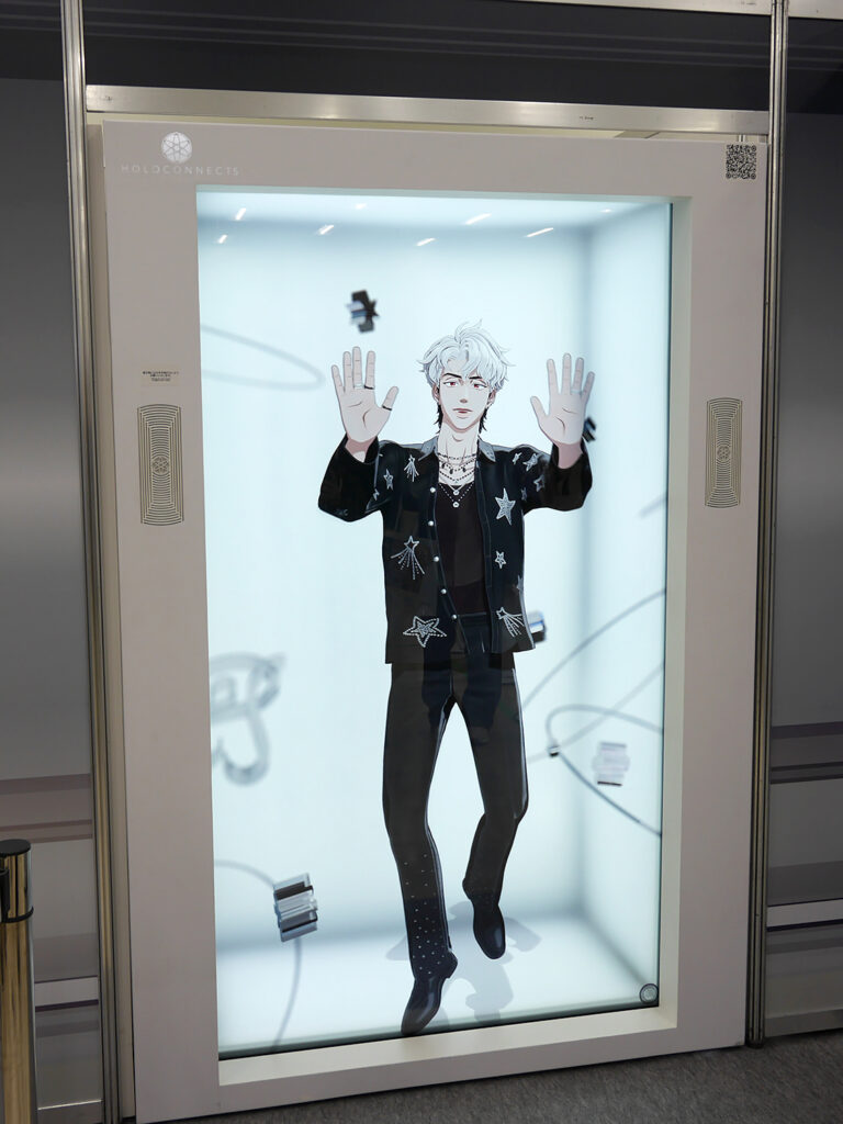 また、バーチャルアイドルならではの、リアルな3Dホログラムが投影された「ホロボックス」が日本初設置。PLAVEが目の前にいるような感覚を味わえました!
