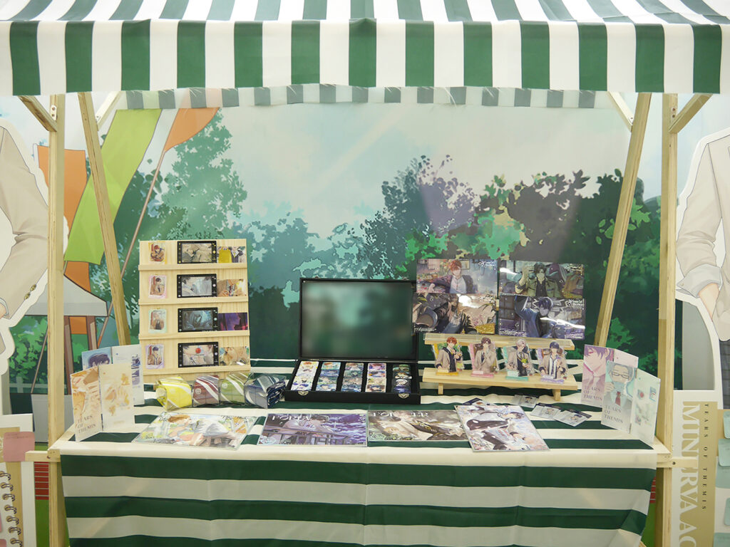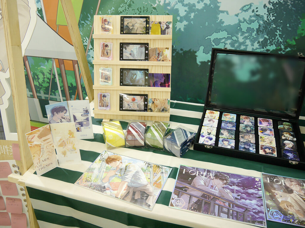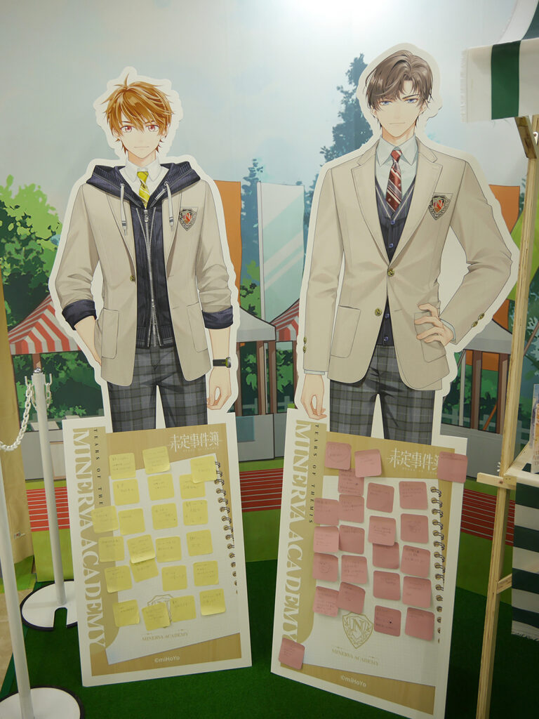 中国発・miHoYoが手がける女性向け恋愛ミステリーゲーム『未定事件簿』のブースも出展! キャラクターの等身大パネルや新商品が展示されていました。