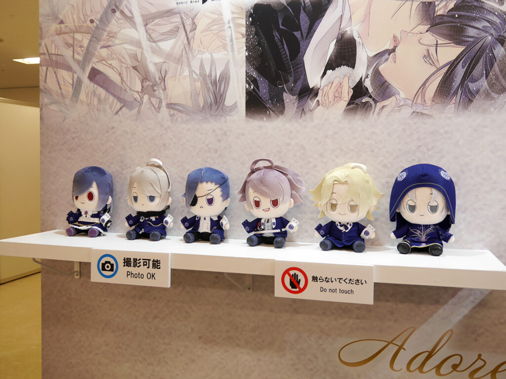 「FaNeMa」ブースでは、オリジナルブランド「ADOREシリーズ」のぬいぐるみや『OVER REQUIEMZ』、『ピオフィオーレの晩鐘』、『薄桜鬼真改』、『Collar×Malice』といった作品の新商品の展示&物販が行われていました。