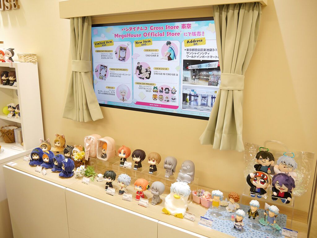 『アイドリッシュセブン』、『銀魂』、『呪術廻戦』、『忍たま乱太郎』、『ハイキュー!!』など、たくさんの作品に関連した新商品の展示が行われていた「メガハウス」ブース!