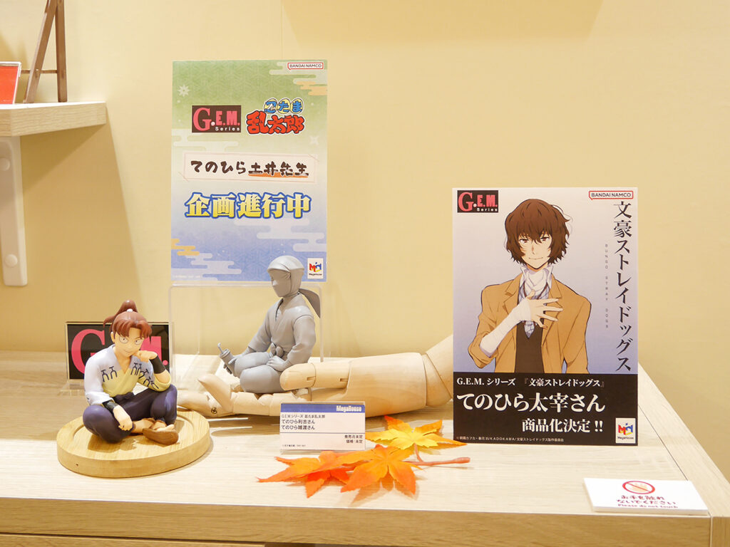 フィギュアシリーズ「るかっぷ」、キャラクターが猫にデフォルメされた「MEGA CAT PROJECT」、てのひらで愛でて楽しめるフィギュア「G.E.M. てのひらシリーズ」、積んで組み替えて楽しい「つみちぇん」など、多くのフィギュアやぬいぐるみが展示されていました。