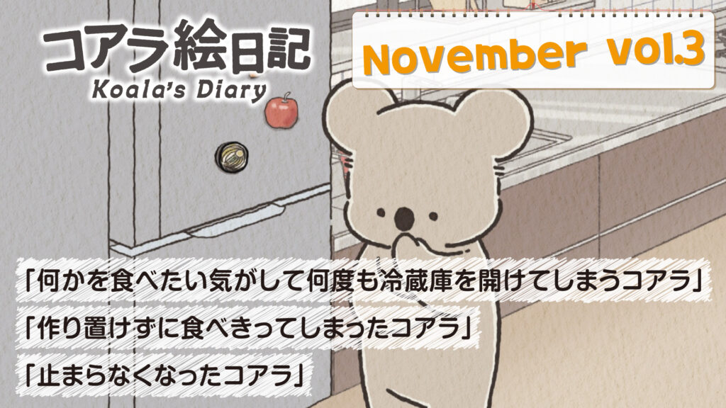 2025年10月2日(木)20時より配信中のアニメ『コアラ絵日記』。その第8話「何かを食べたい気がして何度も冷蔵庫を開けてしまうコアラ」「作り置けずに食べきってしまったコアラ」「止まらなくなったコアラ」の先行カットが公開 … 続きを読む アニメ『コアラ絵日記』第8話の先行カットが公開!