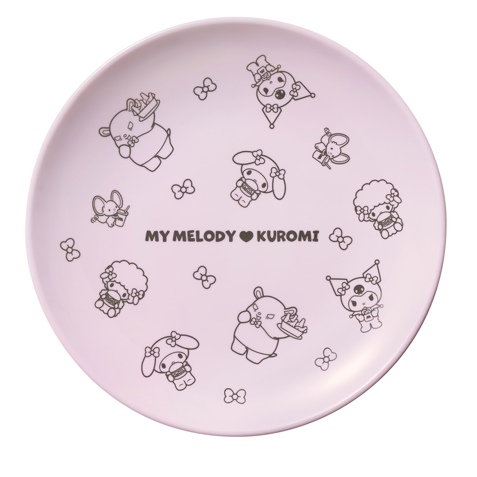 同商品はマイメロディ&クロミとコラボレーションしたフェイスポーチ付きエコバッグ、メラミンプレート、サテンポーチと、「お食事補助券※5,000円相当(500円×10枚綴り)」が入っています。