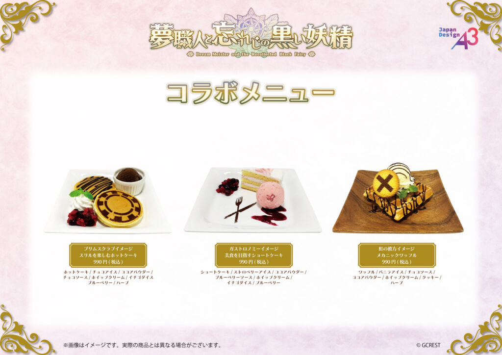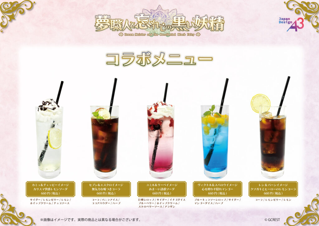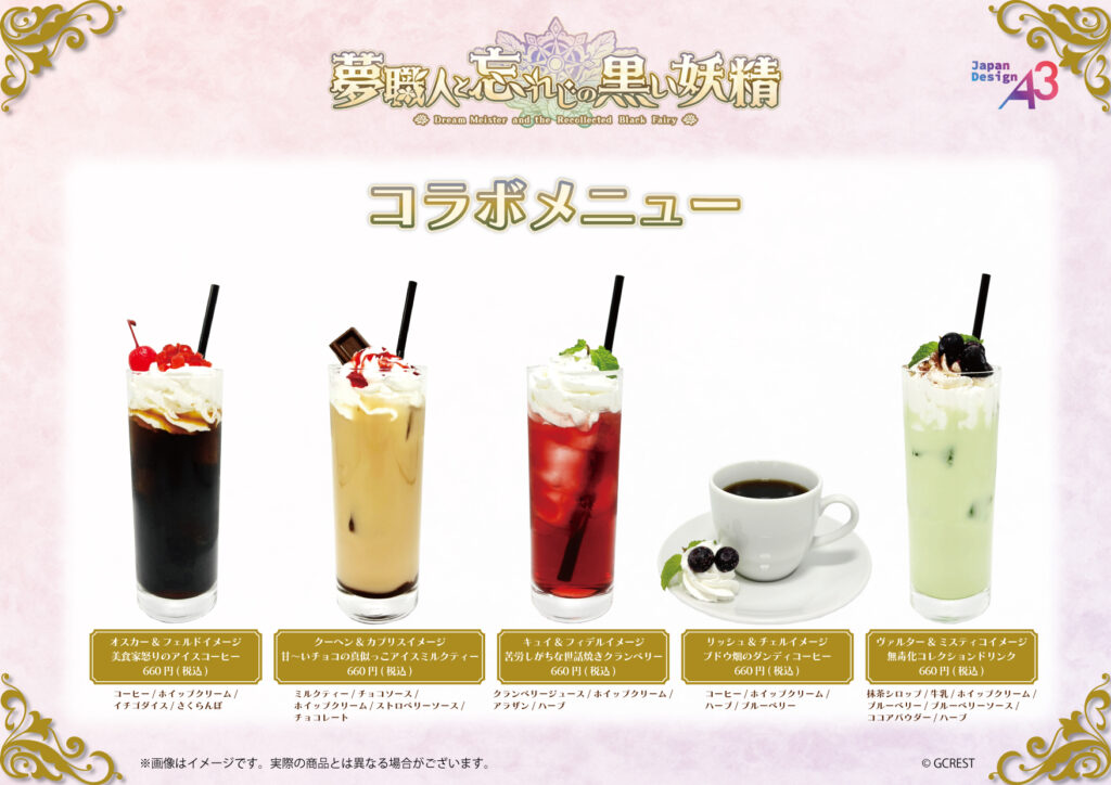 今回のグッズには、「プリムスクラブ」「ガストロノミー」「虹の彼方」のマイスターと、彼らと関係の深い黒妖精たちが勢ぞろい。また、コラボカフェでは特製のドリンク&フードが販売されます。