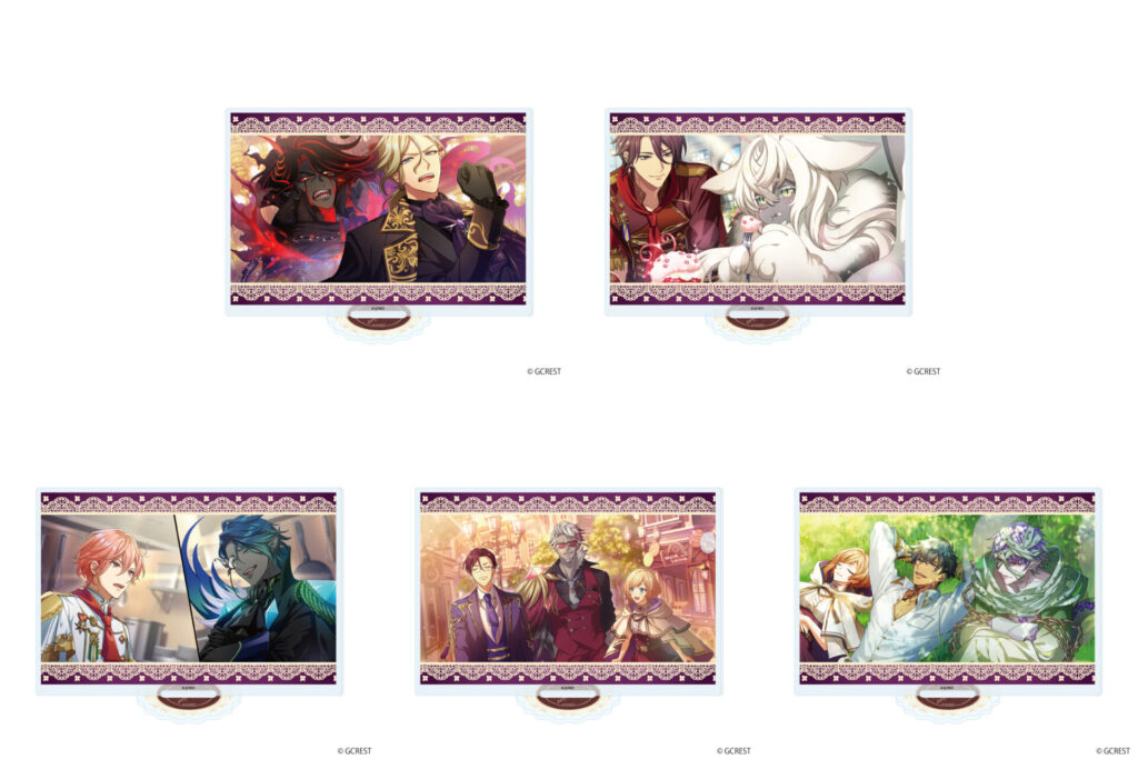 色鮮やかな公式イラストが映えるA5サイズのアクリルボードです。「プリムスクラブ」「ガストロノミー」「虹の彼方」の全3種がラインナップ。