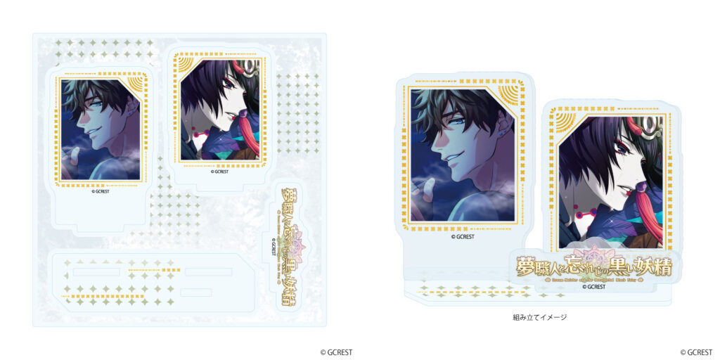 プレートから各パーツを取り外して組み立てると、立体感のあるアクスタが完成します。「カミュ&チェッピー」「オスカー&フェルド」「ラグーン&エンプ」など、3ギルドのマイスターと彼らと関係の深い黒妖精がデザインされた全14種がラインナップ!