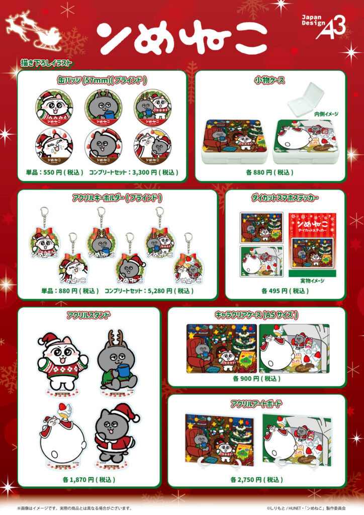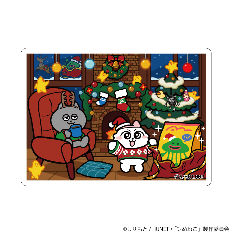 今回の新作グッズには、“クリスマス”をテーマにした描き下ろしイラスト(暖炉ver./ケーキver.)を使用。クリスマスをのんびり楽しく過ごす「ンめねこ」と「うすくろ」の可愛いイラストは、見ているだけでほっこり心が温まるはず!