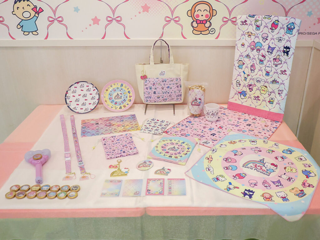 「Sanrio Puroland 35th Anniversary」のモチーフである、リボンをあしらった期間限定オリジナルグッズも登場。定番のクリアファイルやランチトートバッグなど普段使いできるアイテムや、友達や家族とおそろいで持っても可愛いチャーム、巾着セットなどを展開します。それぞれイベントモチーフのリボンやサンリオキャラクターたちがデザインされており、どこから見ても可愛いアイテムが盛りだくさんです。