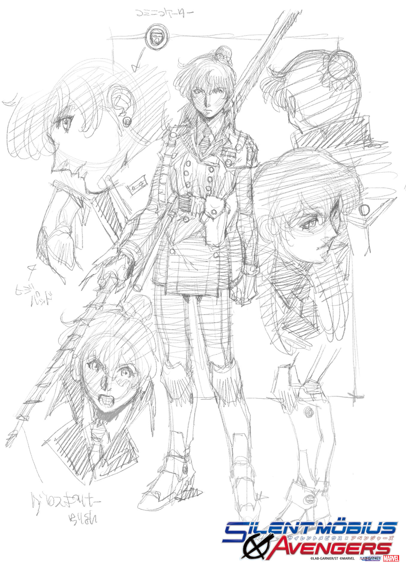 またティザーイラスト2点とあわせて、『サイレントメビウス』の主人公・香津美リキュールと、『アベンジャーズ』のキャプテン・アメリカが描かれたキャラクタースケッチも公開に。