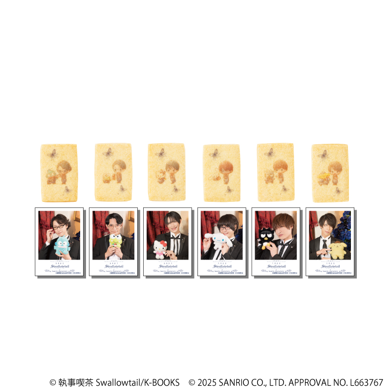 執事たち&サンリオキャラクターズの様々なカットを堪能できるブロマイドが3枚封入されたセットアイテムです。どのデザインが入っているかは、お手元で開封するまでのお楽しみ!
