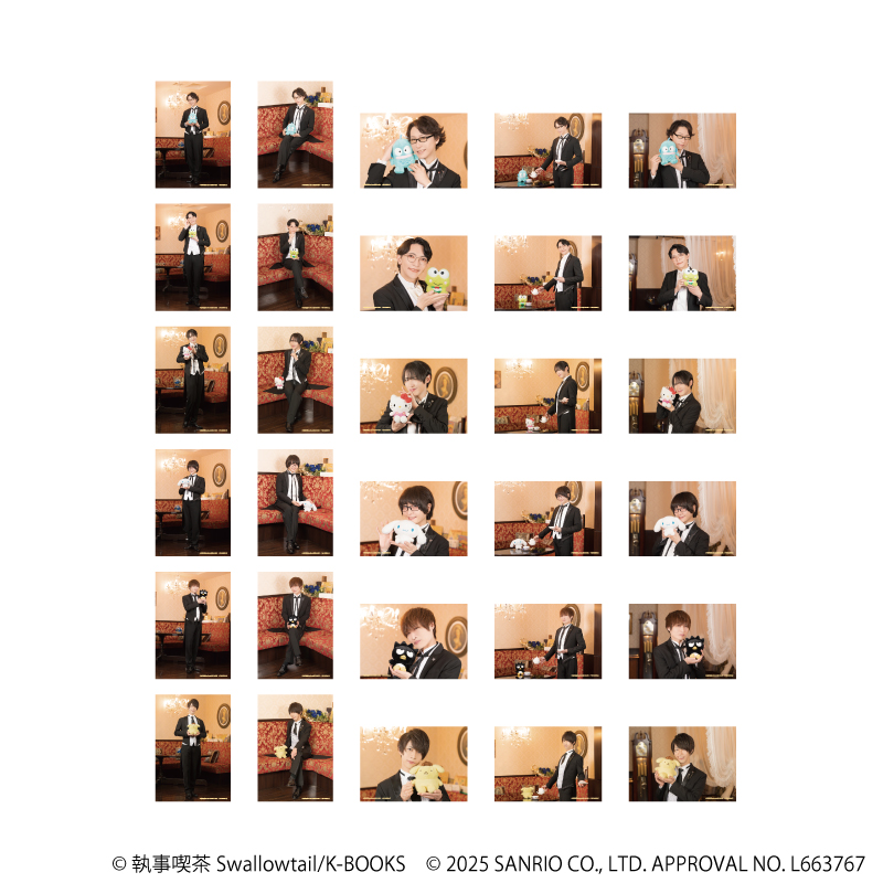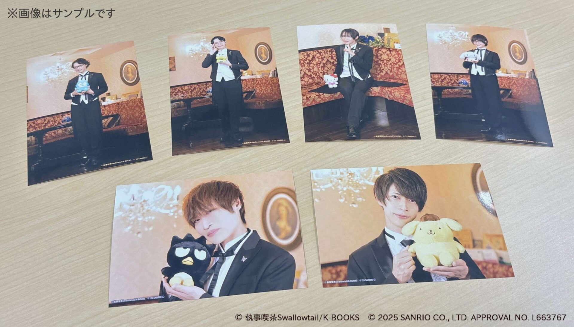 執事たち&サンリオキャラクターズの様々なカットを堪能できるブロマイドが3枚封入されたセットアイテムです。どのデザインが入っているかは、お手元で開封するまでのお楽しみ!