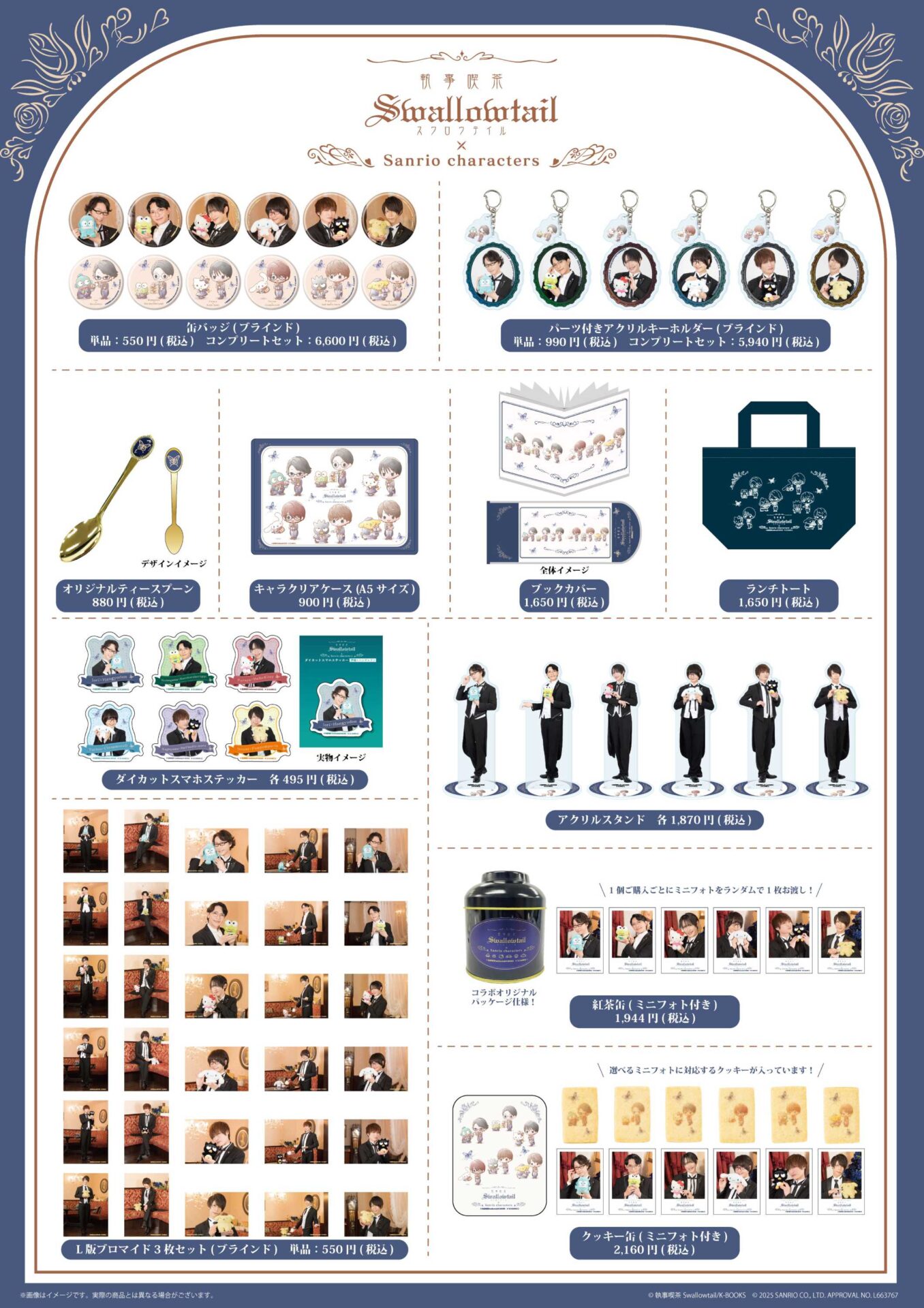「執事喫茶スワロウテイル×サンリオキャラクターズ」コラボグッズが登場! 2025年12月10日(水)よりサンリオアニメストア池袋P’PARCO店で店頭販売が、通販サイト「サンリオアニメストアONLINE」で通販がスタートしています。