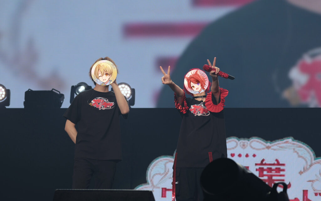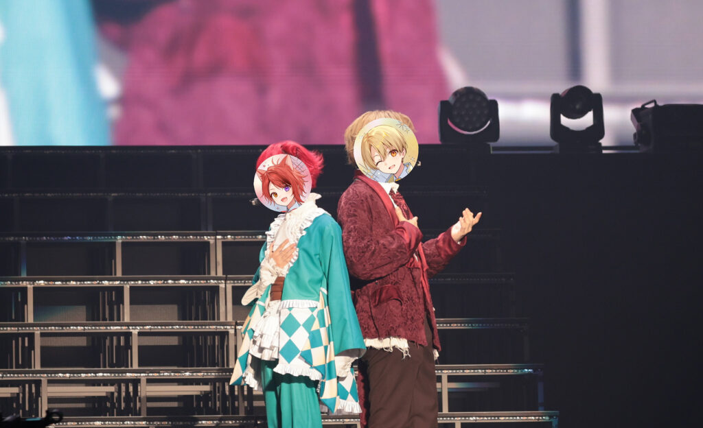 その後も、「みんなのことがめちゃくちゃ見えるぞ。俺のことがかわいいのかい? でも君の方がかわいいよ。オシャレしてくれてうれしいな」とメロ過ぎる莉犬が、「今日は他にも王子様がいるような気がするんだけど……」と切り出すと、すとぷり内公式ペアの相方・るぅとが登場! 早速、「ちこくしてもいいじゃん」から莉犬との丁々発止の掛け合いで沸かせ、手をつなぎステージを横断する、るぅりーぬの2人。行き当たりばったり(!?)のやり取りもほほ笑ましい限りで、「るぅとくん、俺の目を見て。今日は初めてオッドアイを隠さずに来てみたんだ」と明かした莉犬に、見ているこちらがドキッとするほど顔を近づけたるぅとが、「ワンダーランドは好きにしていい場所だからね」と返したのも何とも粋だった。
