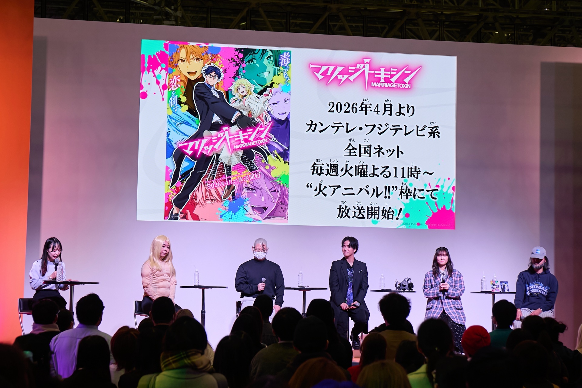 2026年4月より毎週火曜よる11時から、カンテレ・フジテレビ系全国ネット“火アニバル!!”枠にて放送予定のTVアニメ『マリッジトキシン』。放送を控える中、2025年12月20日(土)に幕張メッセで開催されたジャンプフェスタ2026・ジャンプステーションにて、『マリッジトキシン』ステージが実施されました。