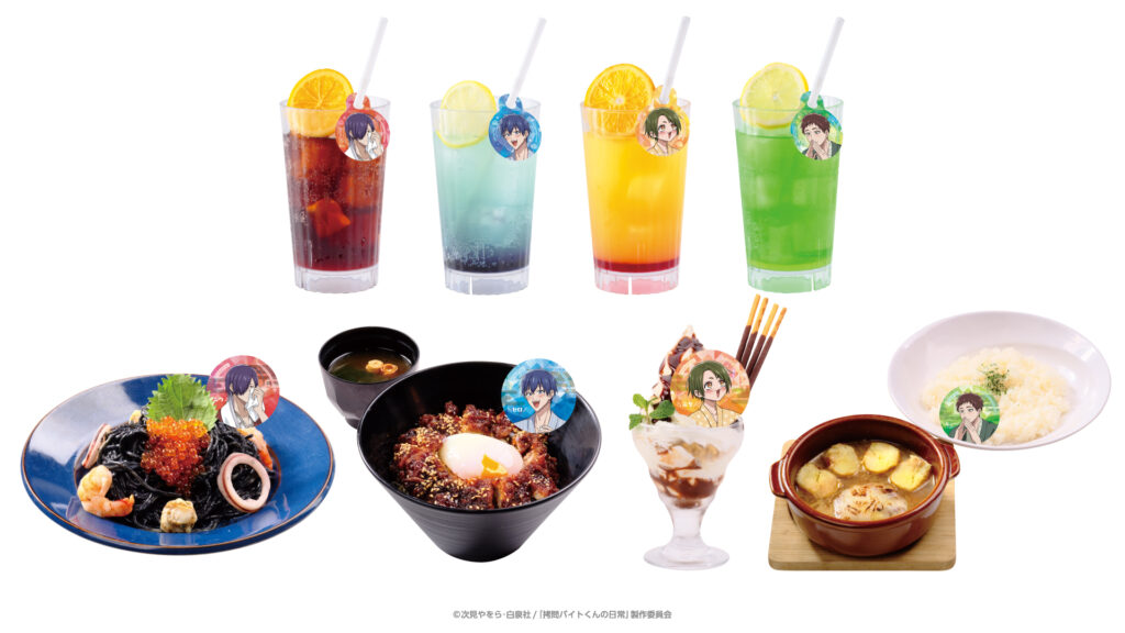 店舗のレストランでは各キャラクターをイメージしたフードやドリンクを販売いたします。また、1品ご注文ごとにオリジナルコースターをランダムでプレゼントいたします。