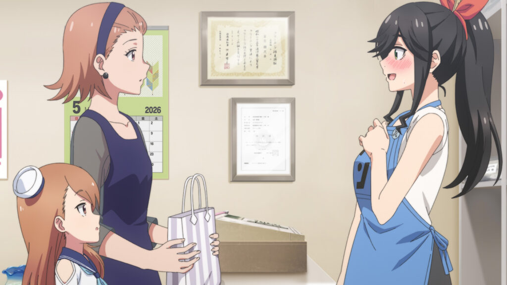 熱栄ひもの店の孫娘の那色が母親に連れられてやってくる。服に落書きをしてしまったのだ。