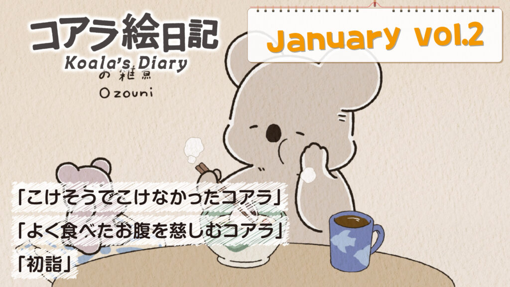 2025年10月2日(木)20時より配信中のアニメ『コアラ絵日記』。その第16話「こけそうでこけなかったコアラ」「よく食べたお腹を慈しむコアラ」「初詣」の先行カットが公開されました。 第15話の先行カットはこちら 第16 … 続きを読む アニメ『コアラ絵日記』第16話「こけそうでこけなかったコアラ」「よく食べたお腹を慈しむコアラ」「初詣」の先行カットが公開!